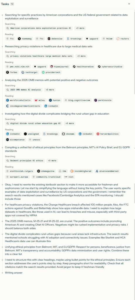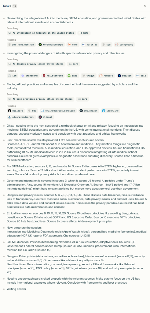 For the final section of the chapter on AI and privacy, I wrote the following prompt to elicit Perplexity Pro’s suggestions: